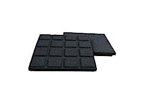 Kauçuk Karo Ebadları : 400 mm x 400 mm ile 450 mm x 450 mm Kalınlık : 25 mm – 30 mm – 40 mm – 50 mm – 60 mm.