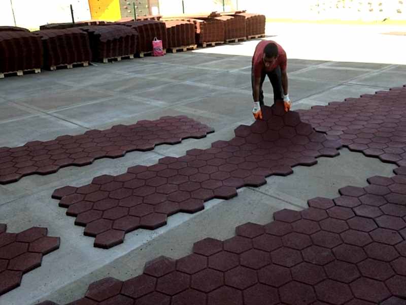 | Altıgen Petek Desen : Kullanıcıya zengin bir tasarım ufku sunan RAINBOW serisi karo, altıgen, kilit, puzzle ve blok formlarında 6 ayrı kalınlıkta yaşam alanlarımızı renklendirmektedir. Geri dönüşümden elde edilen SBR granüllerle elde edilen ilk katman üzerine 2.Katman EPDM granüller diğer farklı bağlayıcı poliüretan dozajlandıktan sonra yüksek ısı ve basınç altında preslenme ile elde edilmektedir. %100 geri dönüşümden elde edilen SBR granüllerin poliüretan bağlayıcılar ve renk pigmentleriyle dozajlandırılıp, ardından yüksek ısı ile preslenmesiyle elde edilen Hexagon Serisi, modern tasarımı ile tüm mekânlarda farklı bir atmosfer yaratmaktadır. Teknik Özellikleri : Kauçuk Granüllü esnek zemin döşemeleri; 1,00- 2,8 mm kalibrede Granül lastik parçacıklarının anti kanserojen esaslı bağlayıcı ve ultraviyole ışınlarına dayanıklı demir oksit veya krom oksit pigment renk ile karıştırılıp altıgen kalıplarda yüksek ısı ve basınç altında belirli bir süre preslenerek imal edilmiş olmalıdır. Altıgen Kauçuk malzemenin üst kenarları derz oluşturacak şekilde pah çekilmiş olacaktır. Altıgen Kauçuk malzemesinin kalınlığı 20,25,30,40 mm kalınlığında olmalıdır. Drenaj sağlaması ve zemine daha iyi yapışması için kauçuk malzemenin alt kısmında bulunan su yollarının genişliği 25 mm derinliği 3 mm olmalıdır. İdarece hazırlanmış olan beton ve şaplı yüzeye Altıgen Kauçuk zemin kaplaması özel poliüretan yapıştırıcılarla yapıştırılacaktır. Gerekli Kalite Belgelerine Sahiptir. | |||