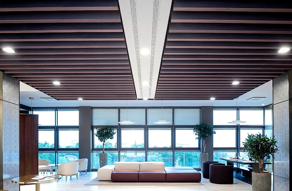 Linear Asma Tavan Sistemleri Ayrıcalıkları : Lineer Ahşap Asma Tavan Sistemleri, mimar ve tasarımcıları özel tavan sistemleri tasarlamalarında özgür kılıyor. Sistem, iç ve dış mekan uygulamaları için geniş bir tasarım özgünlüğü sağlıyor. İçbükey, dışbükey ve dalgalı tavan bölümleri, farklı geometrilerde özel çözümler ve özel tasarlanmış süspansiyon sistemi sayesinde kolaylıkla oluşturulabiliyor. Sistem, düz ve geniş alanlar, dış mekanlar ve yüzme havuzu alanları da dahil olmak üzere tüm durumlarda panellerin terazide ve düzgün kalmasını sağlayacak şekilde dizayn edilmiş. Ahşap cinsi seçenekleri de kızıl sedir ve maun gibi derin sıcak renklerden başlayarak kavak ve akçaağaç gibi daha hafif tonlara varan geniş bir yelpazede sunulmakta.