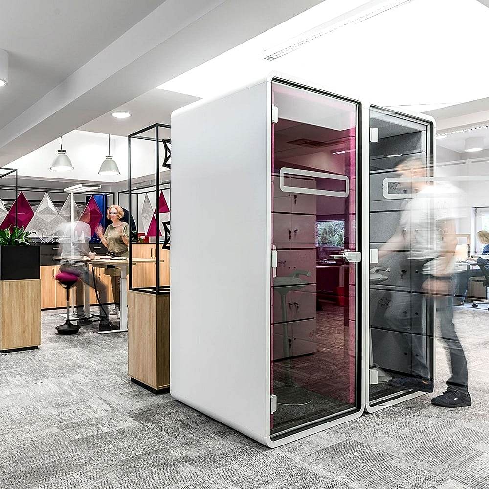 Çerçeveli ofis kabinleri, çağrı yapmak, video konferans yapmak, dokunmatik ekran veya bire bir özel toplantılar yapmak için benzersiz bir sessiz alan sunuyor. Her iki telefon kulübesi; Çerçeve O toplantı alanı; Framery Q, kabinlerin çalışma alanının hemen yanında yer almasını sağlayan, yün ve lamine ses kontrol camından yapılmış inanılmaz ses yalıtımı özelliklerine sahiptir. Çerçeve kulübesi tasarımı, kolay monte edilebilir ve herhangi bir zamanda yeniden yerleştirilmesi kolaydır.